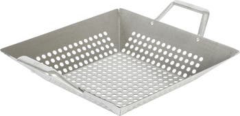 Grill an assortment of small ingredients with the Martha Stewart Amber 12 Inch Square Cast Aluminum BBQ Grill Topper. Features four raised sides to keep food from fall, and built-in handles to easily move from grill to table. The cast aluminum body is perfect to withstand open flame grills while boasting an appealing silver design. Grill green onions, mixed veggies, corn, or other small sides. Item Dimensions: 13.50" x 12.00" x 4.50" Item Weight: 2.00lbs