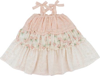 Our Amber Dress, made from airy 100% cotton gauze, features our bestselling silhouette and hand-drawn fan-favorite prints. The tiered design alternates floral and broderie anglaise layers for a romantic, heirloom feel. Adjustable tie straps and a flattering A-line silhouette ensure a perfect fit. Ideal for in-between seasons—wear alone or layered. Made in Peru with love.