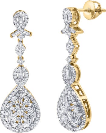 Make a stunning impression with the Ambery 14K Gold Diamond Drop Earrings. These earrings are 1.00 CTW and make a radiant statement. Crafted in 14K gold and featuring natural diamonds. Perfect for whether you are celebrating a milestone or elevating your everyday look. These diamond drop earrings add the perfect touch of brilliance with every movement. Ambery delivers a refined silhouette with standout shine that feels both modern and classic. Diamond carat weight may vary up to 0.05 carats from the stated weight.