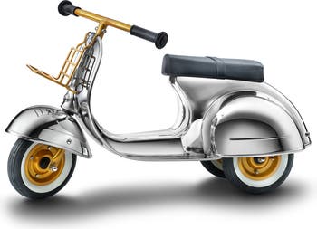 A trio of sturdy rubber wheels keeps your little speedster road ready in this retro ride-on scooter perfect for the child on the go. A cushy seat and working handlebar will have your kiddo feeling just like the grown-ups as they cruise the driveway in this meticulously handcrafted ride-on toy.