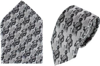 Make a distinguished statement with the Ambrose Dapper Night Silk Novelty Necktie and Pocket Square Set. Crafted from smooth, lustrous silk and finished in a refined silver-grey tone, this coordinated pairing features a timeless dapper gentleman motif that evokes classic evening elegance. Designed for the modern gentleman with an appreciation for character and craftsmanship, it brings subtle personality to formal and special-occasion dressing. Pocket Square measures 12 x 12, while the tie measures 3" x 57.5".