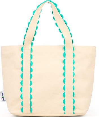 The Nantucket Mini Tote is a charming blend of classic style and practicality, crafted from durable canvas with delicate scalloped edging. Its perfectly compact size makes it an effortlessly chic companion for any outing. Canvas Zip closure. Back exterior zip pocket. Interior zip pocket. Two interior slip pockets. Nylon liner. 9.5”L x 5.5”W x 9.5”H.