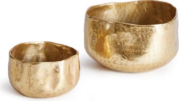 - With a modern, organic shape and natural hammered texture, this set of two cachepots are a breath of fresh air. The perfect complement to a natural green or coveted orchid.