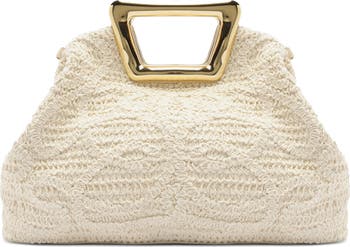 A crochet-inspired texture adds trend-right appeal to a slouchy bag accented in gilded hardware.