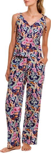 Merfolk swim through a sea of blooms across a pair of all-cotton pajamas that look darling during the daytime too.