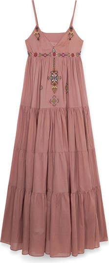 The Amelie womens cotton dress embodies timeless elegance with a summer twist. From Fortela, this dress features thin straps and a deep neckline for a light, refined look. The renewed cotton thread embroideries, enriched with multi-color Navajo-style beads, add a unique artisan touch. Perfect for special occasions or everyday wear, it captures the essence of summer style.
