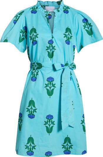 A matching belt cinches the waist of this summery dress made from lightweight cotton and covered in a vivid flower print.