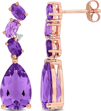 Amethyst & Diamond Drop Earrings 10k