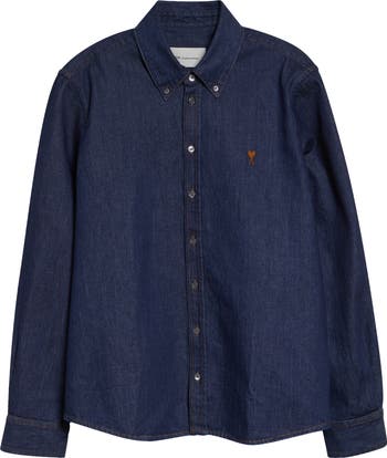 Ace-of-hearts embroidery—a play on founder Alexandre Mattiussi's monogram—deals a winning look to this denim button-down shirt featuring a deep indigo rinse.