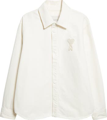 A hand-stitched ace-of-hearts emblem—a play on founder Alexandre Mattiussi's monogram—deals a winning look to this all-cotton overshirt punctuated with tonal snaps.