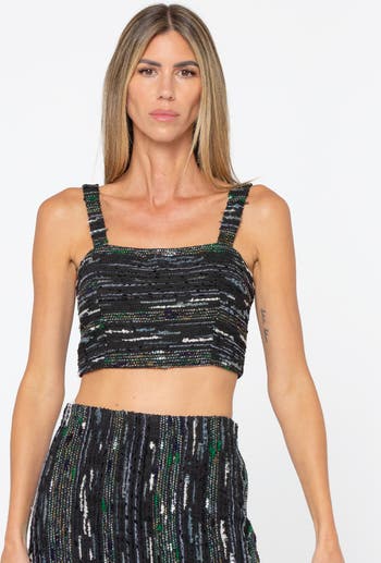 The Ami Top is a sleek and structured cropped silhouette that adds instant polish to any look. Crafted from a richly textured multi-colored woven fabric with subtle metallic threading, this square-neck top features thick shoulder straps and a fitted bodice for a flattering finish.