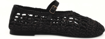- Breathable raffia material Leather strap Leather lining Man-made sole Almond toe Flat 0.5'' heel