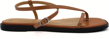 The wear-all-day strappy sandals feature an open square toe, an asymmetric t-strap and walkable flat sole to keep you comfortable.