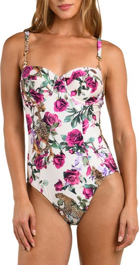 Feel supported as you soak up the sun in this underwire one-piece swimsuit featuring a powermesh lining and seamed cups.