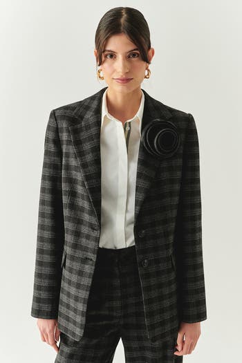 The Plaid Collar Jacket offers a polished, versatile look. It adds a polished layer that works across day-to-evening looks. It layers easily over dresses, shirts, or knits and gives the look a clean finish.