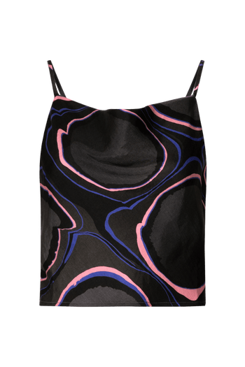 The Amman top is a body-skimming crop tank with an elegant cowl neckline, and adjustable straps.