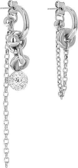 Glam and punk rock meet mismatched drop earrings strung with chain and dipped in palladium.