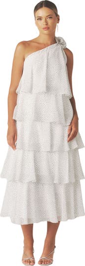 Six Stories Amora Corsage Detail Tiered Midaxi Dress, Main, color, White
