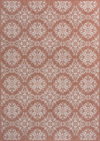 Our classic rug design is inspired by vintage Mediterranean tile patterns. This rug is made from durable synthetic fibers woven into a traditional floral design. It's durable enough for outdoors on a porch, or in the living room, entry, bedroom or dining room.