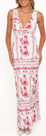 Cut from a lightweight linen-kissed blend, this sleeveless maxi is fronted with a deeply dipped neckline and covered in enchanting blooms.