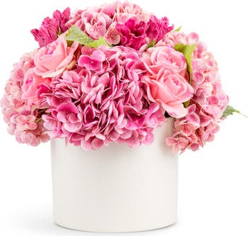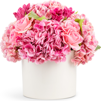 The Amour RealTouch Mixed Floral Arrangement is a romantic composition of luxuriant pink hydrangea, soft roses, and layered accent blooms, designed to feel full, expressive, and beautifully lifelike. Set in a clean, modern vessel, this arrangement brings warmth, charm, and a sense of occasion to any space. Perfectly suited for consoles, side tables, kitchen counters, or coffee tables, the Amour RealTouch Mixed Floral Arrangement adds instant elegance to the home and makes a perfect gift for celebrating love, milestones, or everyday moments. A lasting luxury, timeless and unrivaled.