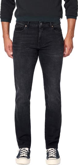 A lightly faded black wash renders a worn-in vibe to a pair of slim-fit skinny jeans that effortlessly retain their shape while also offering stretch.