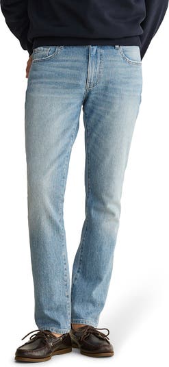 Slim and smart without being skinny, these jeans cut from high-performance cotton denim stretch and recover comfortably without bagging at the knees or sagging in the waist. Nicked edges and heavy fading give them an old-favorite look and feel the first time you put them on.