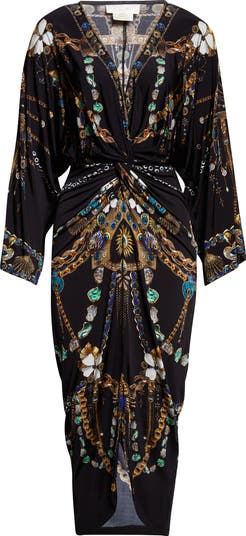 Camilla's signature crystals shimmer like scattered constellations across this artfully draped jersey dress in a limited-edition print of charms, chains and talismans inspired by the rich tradition of Turkish jewelry and the art of adornment.