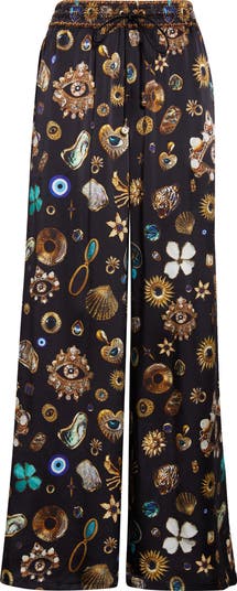 Camilla's signature crystals wink within gilded drawstrings on these lustrous silk-satin pants in a limited-edition print of charms, chains and talismans inspired by the rich tradition of Turkish jewelry and the art of adornment.