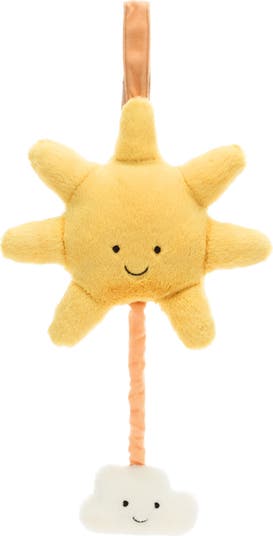 Spark and delight little imaginations with this plush musical pull toy boasting an adorably smiling sun tethered to an equally mirthful cloud.