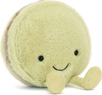 Here's your favorite sweet tooth's free pass to play with their food—a snuggly-soft macaron plushie garnished with a stitched smile and corded boots.