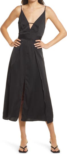Lilac-hued satin softens a stylishly sultry dress with a backless silhouette, gently flowing skirt and a tie at the waist.