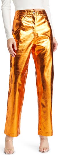Amplify any outfit with the sleek texture of these shiny mid-rise pants fashioned with relaxed straight legs and a showstopping hue.