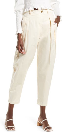 A tapered fit and an ankle-grazing length update these staple pants cut from pure cotton.