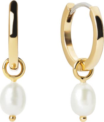 These polished huggie hoops with pearl drops are perfect for bringing a minimalist elegance to your look.