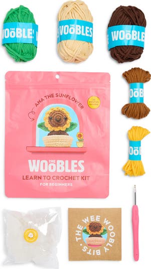 THE WOOBLES Ana the Sunflower Learn to Crochet Kit, Main, color, Brown
