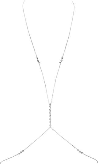 Spread shine from your neck to your waist with this delicate body chain embellished with bezel-set cubic zirconia.