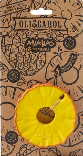 This handcrafted teether is made from natural Hevea-tree rubber with hand-painted details and no holes (so no mold can grow inside.)