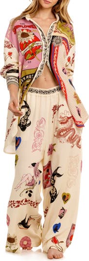 A bold pattern projects energy and fun on this cotton-kissed cover-up shirt that's framed by a tunic length and long sleeves.