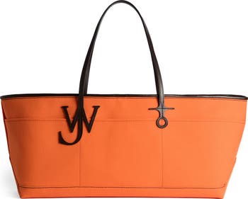 The brand's anchor logo descends from the leather straps of this durable canvas tote designed in an elongated east/west silhouette.