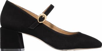 Crafted from soft patent leather or suede, this Mary Jane style with a small buckle strap and block heel embodies retro chic femineity.