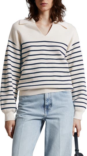 Breton stripes lend a classic element to this cotton-blend sweater made more relaxed with dropped shoulders and balloon sleeves.