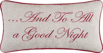 - Add timeless holiday warmth to your space with this beautifully embroidered “And To All A Good Night” pillow. The bold red backdrop, intricate white stitching, and festive typography create an inviting look perfect for cozying up during winter gatherings.