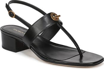 Polished hardware adds a signature flourish to a slingback sandal set on a just-right block heel.