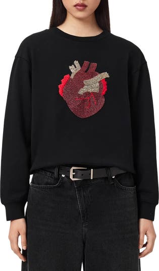 Slouchy sleeves bring a relaxed look to this soft, all-cotton sweatshirt embellished with a beaded anatomical heart motif.