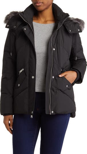 A faux fur-trimmed hood elevates the stylish appeal of a water-resistant matte jacket insulated with soft down fill so you can brave even the coldest of weather.