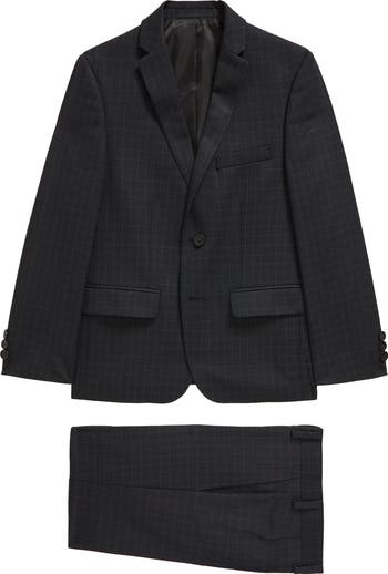 Get your kiddo ready for special events and formal occasions with this slim-fit suit featuring a subtle check pattern.