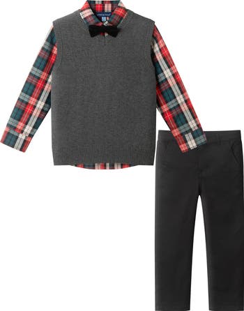 Get them event-ready in no time with this sharp set that includes a button-up shirt, sweater vest, pants and bow tie.