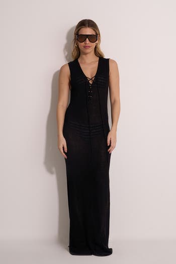 Sun-soaked days call for something effortlessly stylish, like this breezy crocheted beach dress. With a flattering V-neck, front tie detail, and sleeveless silhouette, it’s perfect for layering over your swimwear. Side slits and a maxi length complete the laid-back, beachy vibe.