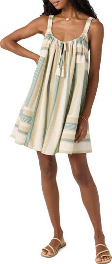 Multidirectional stripes add just the right note of modern sophistication to a woven minidress that's a light and airy summertime essential.